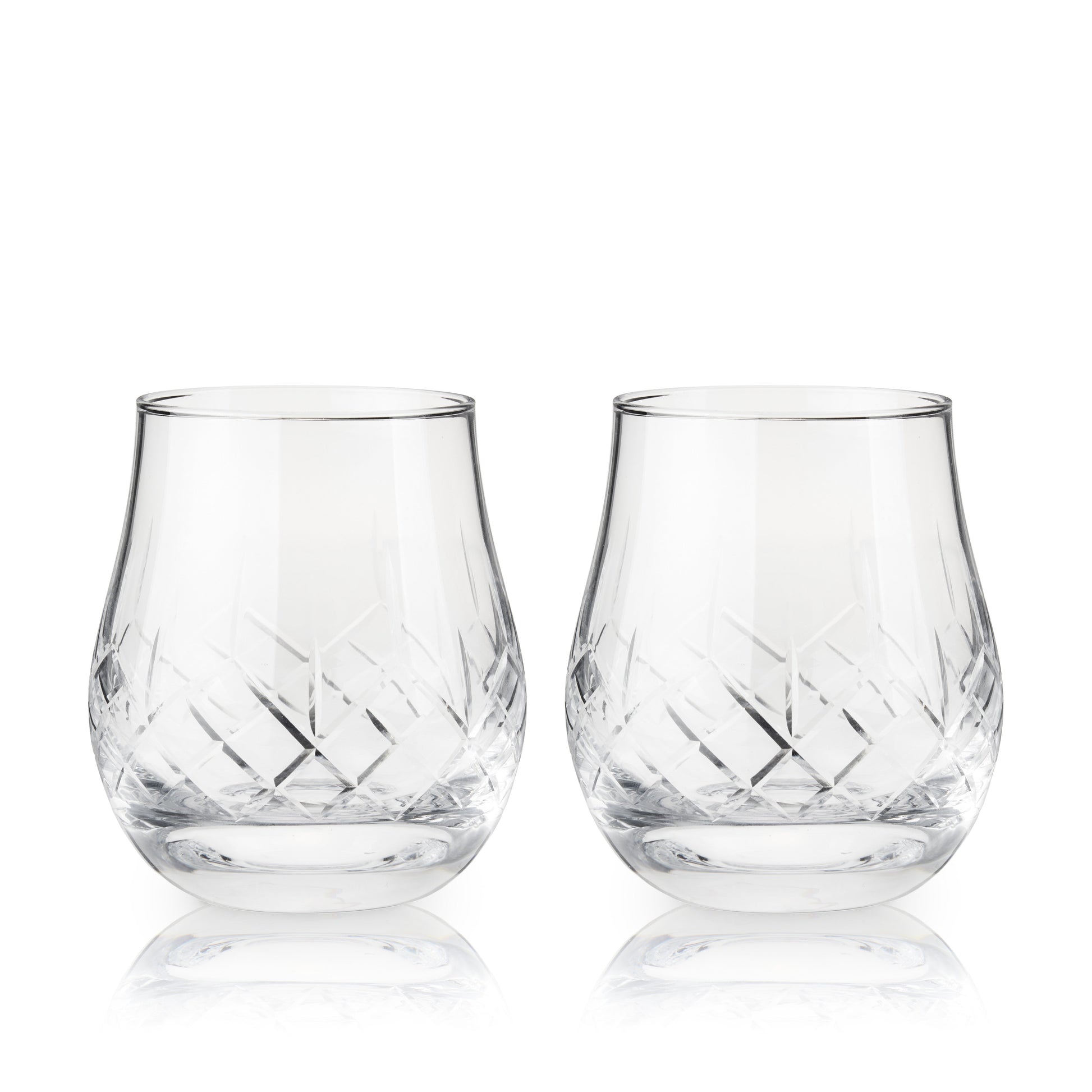 With a cross-hatch pattern etched into pure crystal, these bourbon glasses bring understated elegance to your favorite whiskey. This versatile cocktail glass set is perfect for Old Fashioneds or Negronis, whiskey on the rocks, or a neat pour of your favorite liquor.